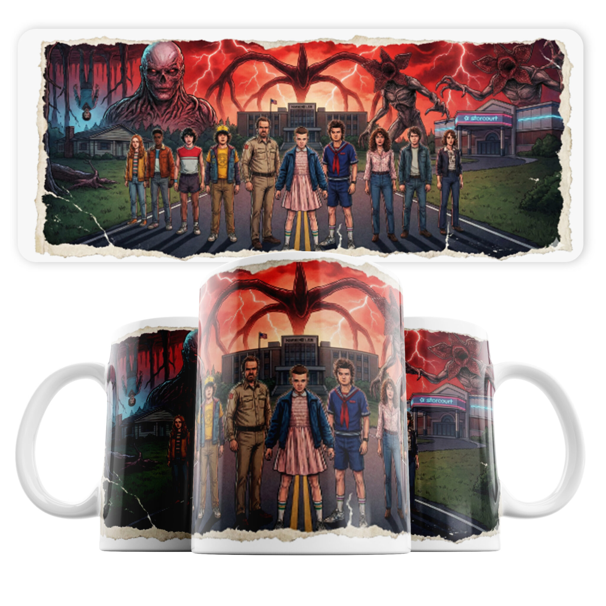 Štítků: Dárek Stranger Things, Fan art hrnek, keramický hrnek, Seriálový hrnek, Stranger Things hrnek