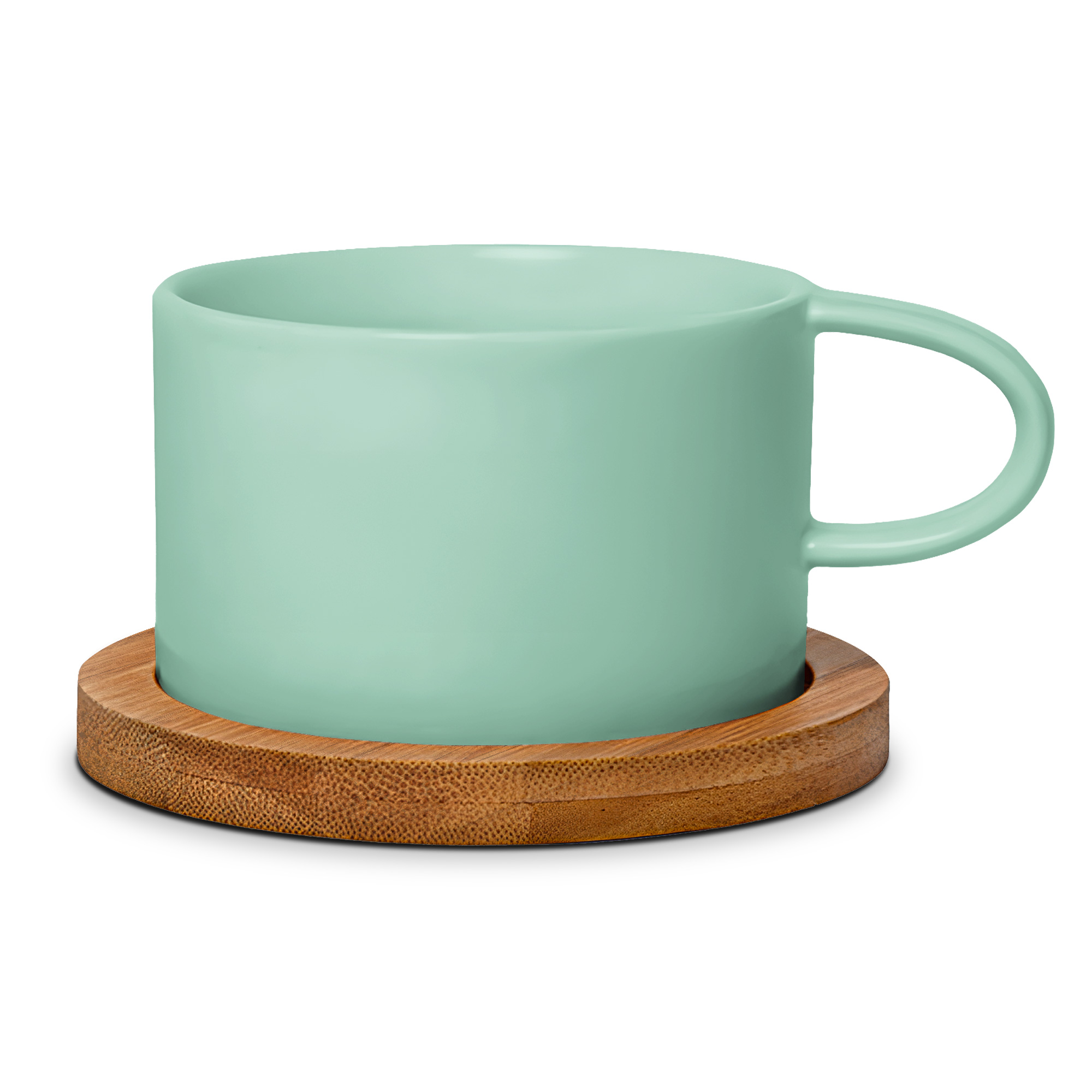Hrnek makronka mint s bambusovým podtáckem. Jeho obsah činí 200 ml.
